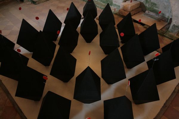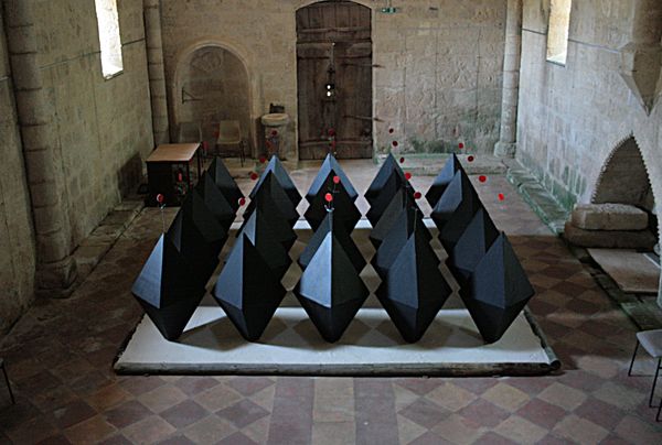 Ce projet qui s’est tenu dans une église proche du village de Mézin dans le Lot-et-Garonne, m’a donné l’envie de relier l’esprit occidental et oriental. J’ai alors imaginé un jardin zen dans une église catholique. Les éléments se sont simplifiés et sont nées des formes minérales qui rappellent l’élévation spirituelle.